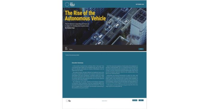 The Rise of the Autonomous Vehicle Automotive Published: March 29, 2023 Reading time: Less than 1 min. FacebookTwitterPinterestWhatsApp Explore why the long-promised lift-off for AVs may not be so far away after all in this editorial report from Graham Hope. Look beyond the alarmist headlines and it’s clear that an exciting future is taking shape before our eyes… Request Free! Get this free Magazine FacebookTwitterPinterestWhatsApp Related articles Navigating the Information Ecosystem with Presse Kompass Live Europe April 21, 2026 ASEAN Inland waterway transport Market to Reach USD 11.14 Billion by 2031, Says Mordor Intelligence Press Releases April 20, 2026 EUROPENEWSWIRE.NET #1 Press release distribution to media in Europe. Send a Release Aircraft Auxiliary Power Unit Market to Reach USD 3.81 Billion by 2031 Driven by Electrification and Emission Control Trends – Mordor Intelligence Press Releases April 20, 2026 Wind Power Equipment Market Technology and Innovation Insights Press Releases April 20, 2026 Recent articles Navigating the Information Ecosystem with Presse Kompass Live Europe April 21, 2026 ASEAN Inland waterway transport Market to Reach USD 11.14 Billion by 2031, Says Mordor Intelligence Press Releases April 20, 2026 Aircraft Auxiliary Power Unit Market to Reach USD 3.81 Billion by 2031 Driven by Electrification and Emission Control Trends – Mordor Intelligence Press Releases April 20, 2026 EUROPENEWSWIRE.NET #1 Press release distribution to media in Europe. Send a Release Wind Power Equipment Market Technology and Innovation Insights Press Releases April 20, 2026 Get these Free Magazines The Essentials of Healthcare IT Kit – 2024 Kit Healthcare December 19, 2023 The Essentials of Marketing – 2024 Kit Marketing December 19, 2023 Tmux Cheat Sheet Technology October 5, 2023 Smart Cities News Technology October 1, 2023 IoT Newsdesk Technology October 1, 2023 Connected Health News Healthcare October 1, 2023 Smart Logistics News Transportation October 1, 2023 Smart Energy News Technology October 1, 2023 Connected Health News Technology October 1, 2023 Connected Industries News Technology October 1, 2023 Smart Logistics News Technology October 1, 2023 Smart Retail News Technology October 1, 2023