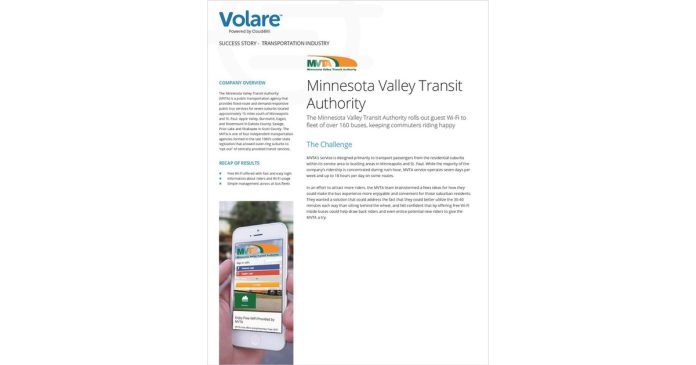 WiFi On-the-Go: MVTA Success Story Automotive Published: October 24, 2017 Reading time: Less than 1 min. FacebookTwitterPinterestWhatsApp The MVTA chose to use Volare to roll out passenger WiFi to fleet of over 160 buses, keeping commuters riding happy.In this Success Story, you will learn how Volare helps the MVTA:Offer free WiFi with fast and easy loginCollect information about passengers and their WiFi usageEasily manage passenger WiFi services across all bus fleets.Complete the form to download the MVTA Success Story. Request Free! Get this free Magazine FacebookTwitterPinterestWhatsApp Related articles $5.5 Billion by 2035 — How Cloud-Based Virtual Desktops Are Transforming Enterprise Computing Press Releases April 22, 2026 $18.9 Billion by 2035 — How AI Is Transforming Strategic Sourcing and Spend Optimization Press Releases April 22, 2026 EUROPENEWSWIRE.NET #1 Press release distribution to media in Europe. Send a Release Navigating the Information Ecosystem with Presse Kompass Live Europe April 21, 2026 ASEAN Inland waterway transport Market to Reach USD 11.14 Billion by 2031, Says Mordor Intelligence Press Releases April 20, 2026 Recent articles $5.5 Billion by 2035 — How Cloud-Based Virtual Desktops Are Transforming Enterprise Computing Press Releases April 22, 2026 $18.9 Billion by 2035 — How AI Is Transforming Strategic Sourcing and Spend Optimization Press Releases April 22, 2026 Navigating the Information Ecosystem with Presse Kompass Live Europe April 21, 2026 EUROPENEWSWIRE.NET #1 Press release distribution to media in Europe. Send a Release ASEAN Inland waterway transport Market to Reach USD 11.14 Billion by 2031, Says Mordor Intelligence Press Releases April 20, 2026 Get these Free Magazines The Essentials of Healthcare IT Kit – 2024 Kit Healthcare December 19, 2023 The Essentials of Marketing – 2024 Kit Marketing December 19, 2023 Tmux Cheat Sheet Technology October 5, 2023 Smart Cities News Technology October 1, 2023 Smart Building & Construction News Technology October 1, 2023 IoT Newsdesk Technology October 1, 2023 Connected Health News Healthcare October 1, 2023 Smart Logistics News Transportation October 1, 2023 Smart Energy News Technology October 1, 2023 Connected Health News Technology October 1, 2023 Connected Industries News Technology October 1, 2023 Smart Logistics News Technology October 1, 2023